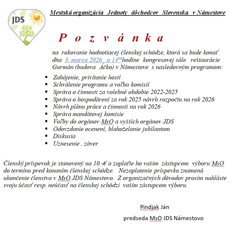 Milí členovia MsO JDS,
